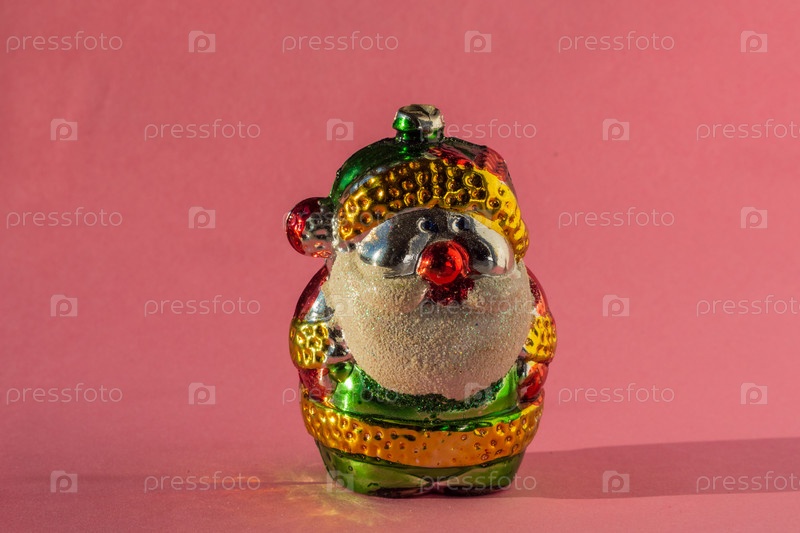 Крупный план елочной игрушки - Дед Мороз на розовом фоне