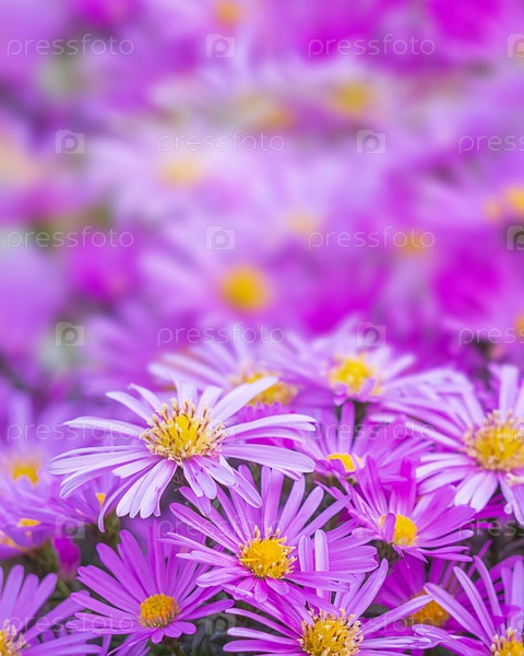 Абстрактная праздничная цветочная открытка. Красивый фоновый букет фиолетовых астр. Дизайн открытки с цветами. Свадебный фон, концепция Дня святого Валентина, День матери. Цветы астры