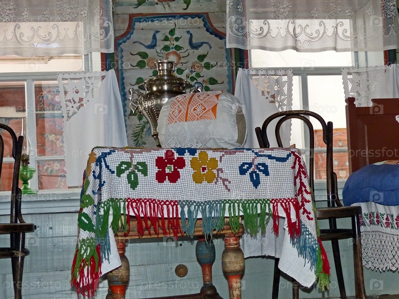 "Чистая (белая)" часть крестьянского дома. Уральская роспись – участие народный промысел. Музей-заповедник деревянного зодчества и народного творчества. Нижняя Синячиха, Россия