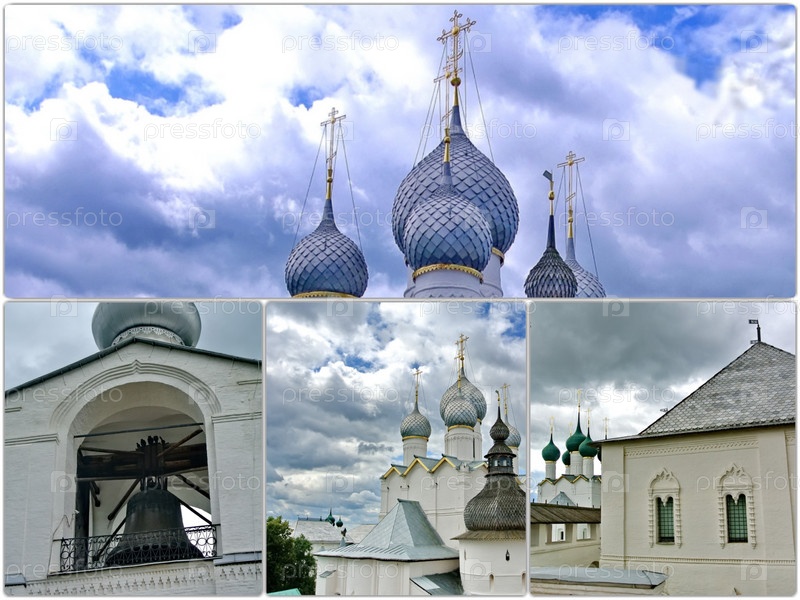 Фотоколлаж с видами Успенского собора Ростовского Кремля. Золотое кольцо России, Ростов Великий