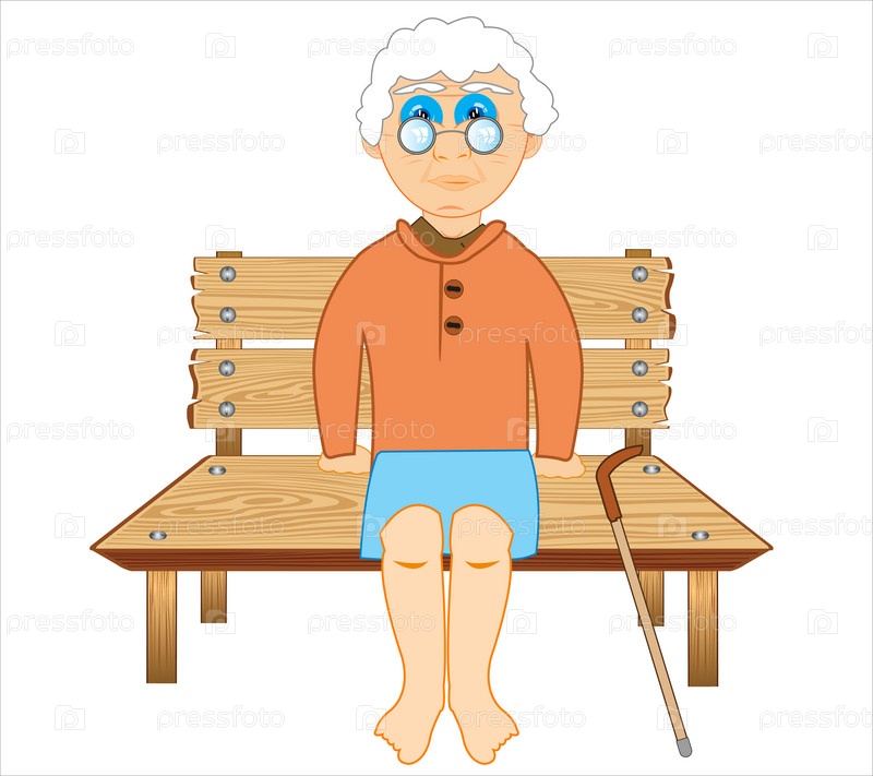 Пожилая женщина с тростью сидит на скамейке