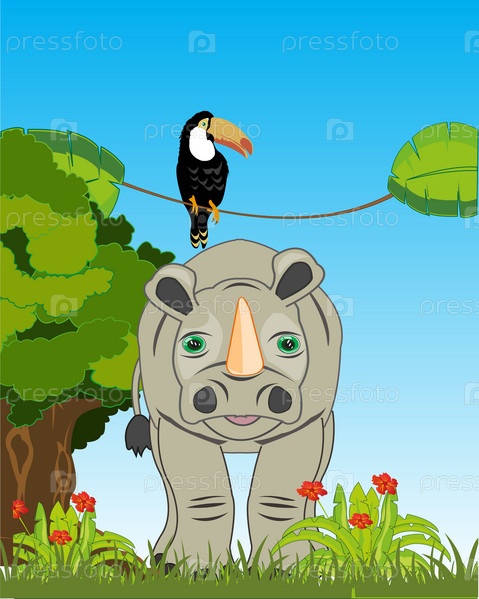Носорог дикой природы и тукан птицы на природе