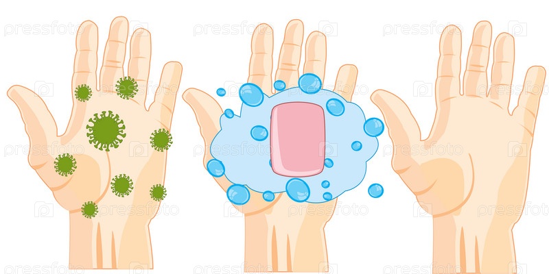Гигиена рук руки с вирусом и чистой после мытья