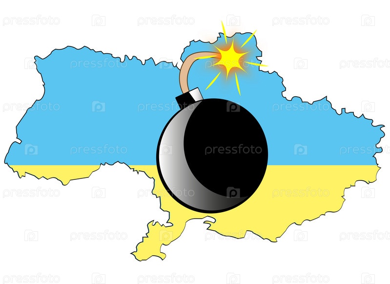 Бомба с зажженным фитилем на карте государства Украина