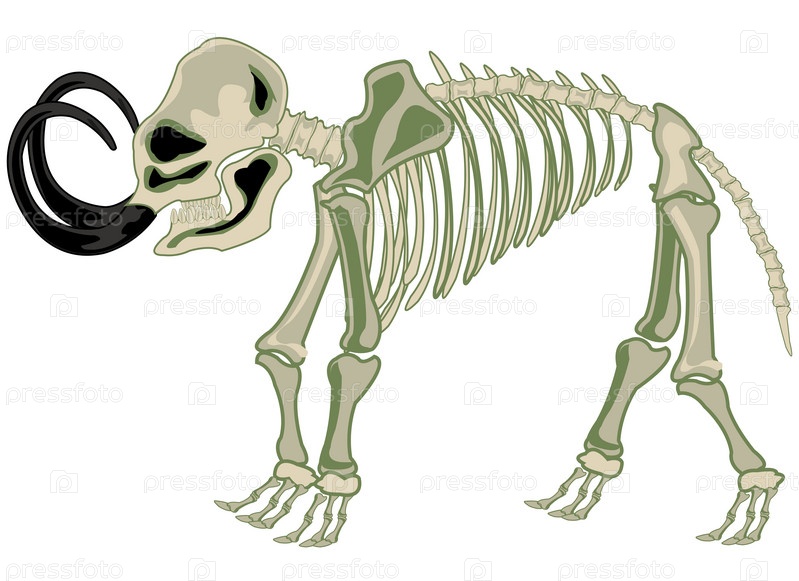 Векторная иллюстрация скелета древнего окаменелого животного мамонта
