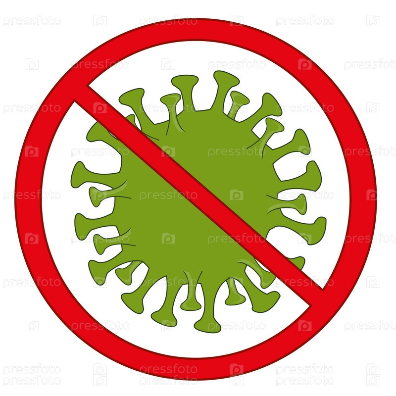 Красный круглый знак, запрещающий заражение бактериями коронавируса