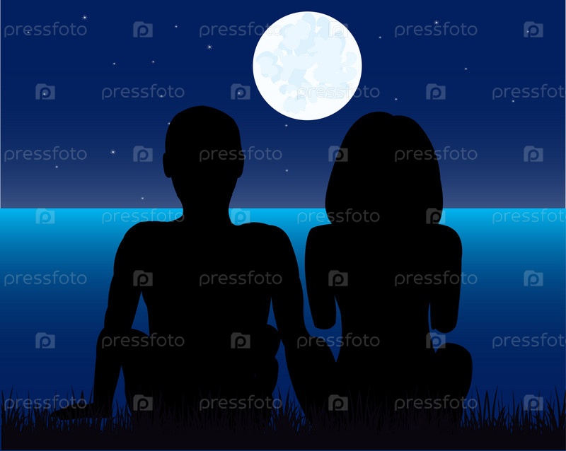 Мужчина и женщина луна ночью у воды