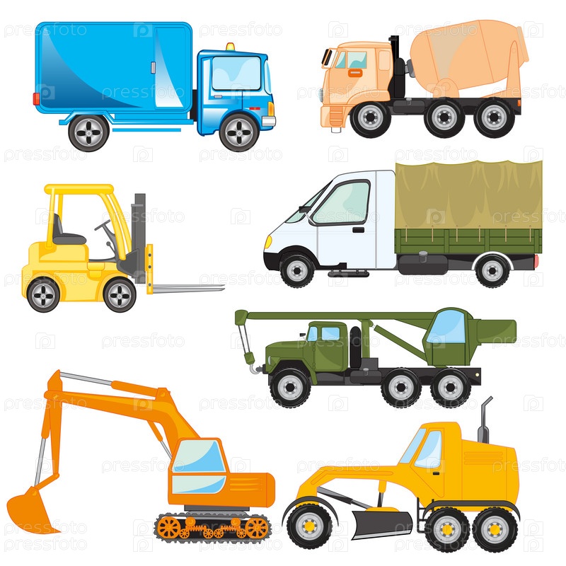 Разнообразные транспортные средства на белом фоне изолированы
