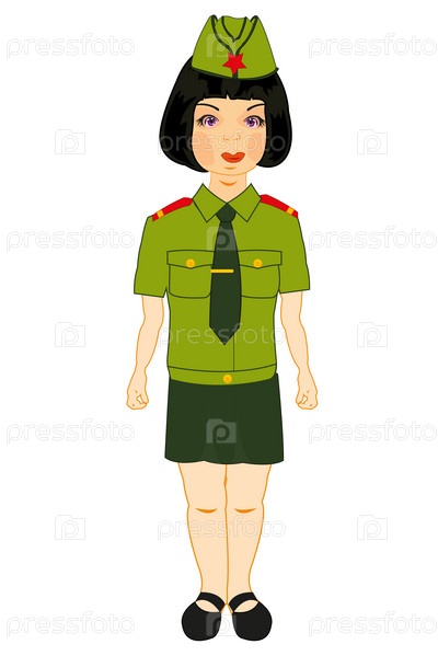 Девушка военная на белом фоне изолирована