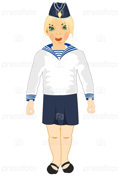 Девушка-моряк на белом фоне изолирована