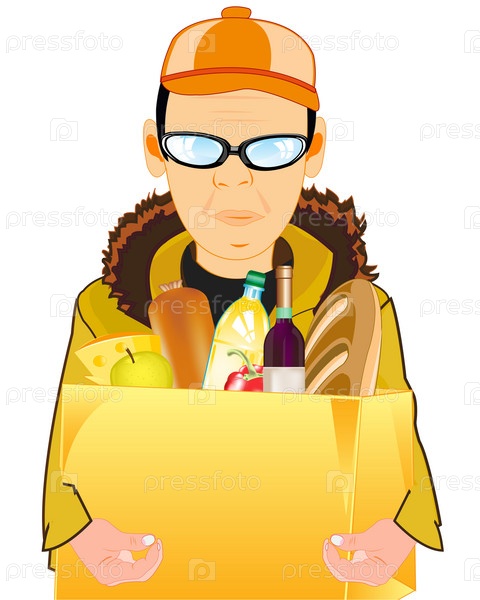 Курьерская доставка товаров из магазина с пакетом еды