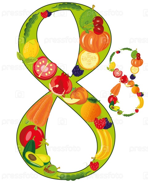 Декоративная цифра восемь из фруктов и овощей