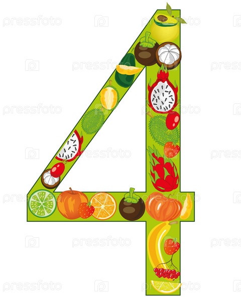 Цифра четыре плода на белом фоне изолирована