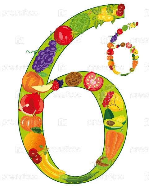Декоративная цифра шесть из фруктов и овощей