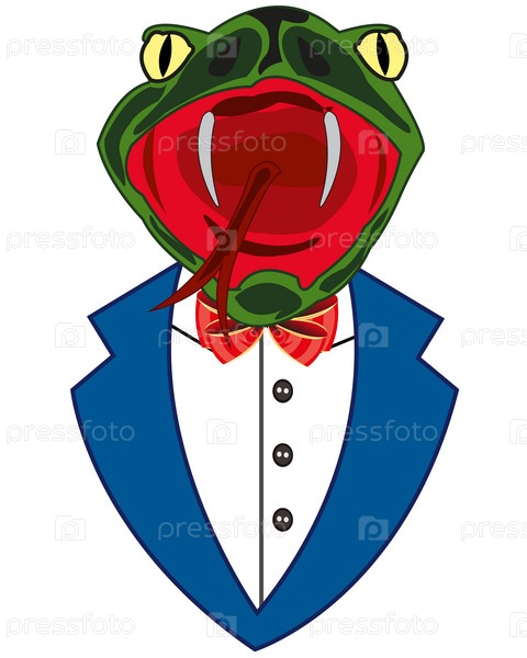Карикатура на портретную змею в костюме на белом фоне изолирована