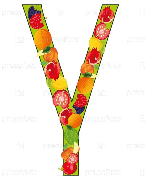 Декоративная буква Y фрукты на белом фоне изолированы