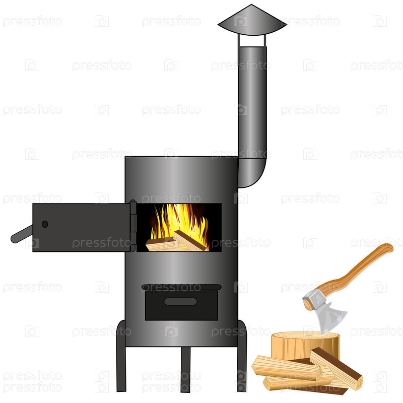 Плита утюг и инструменты топор с дровами