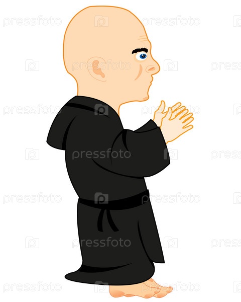 Монах на молитве на белом фоне изолирован