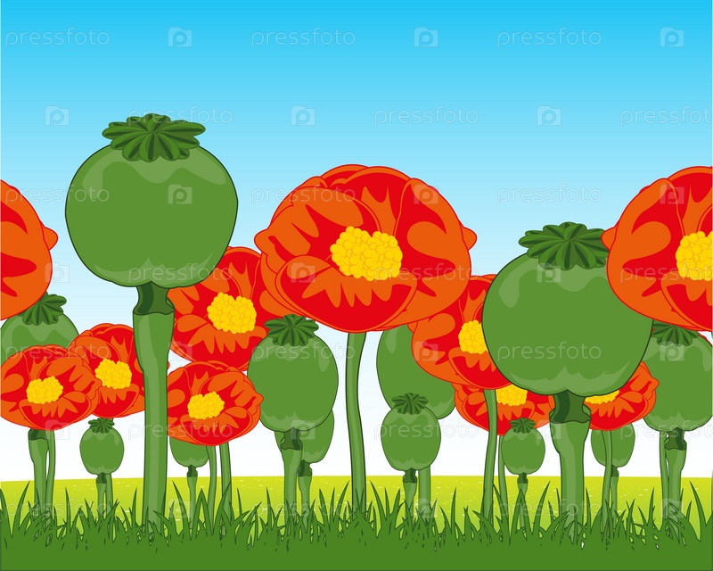 Летнее поле с растущим цветком мака