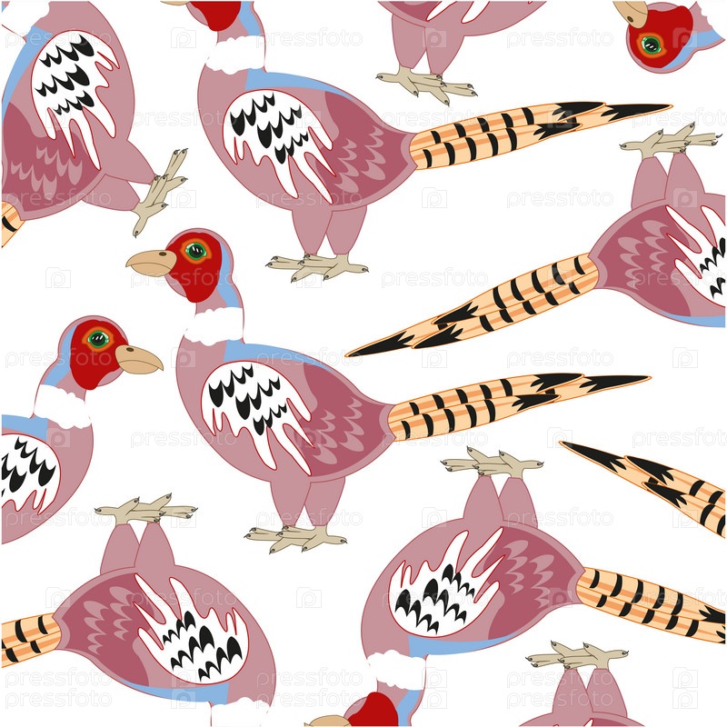 Орнамент птица фазан на белом фоне