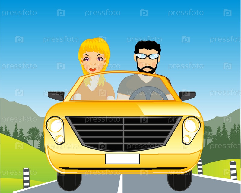 Автомобиль на дороге с пассажиром и водителем в горах
