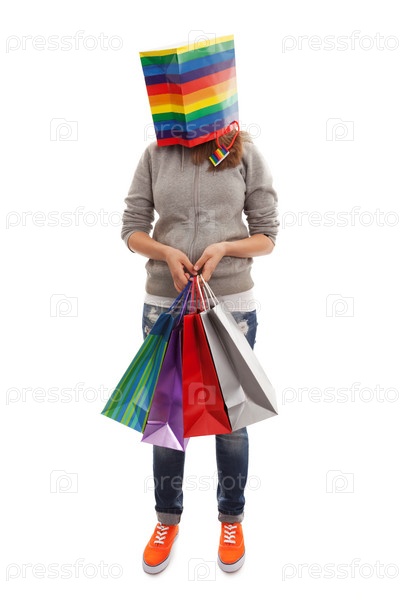 Хомо сапиенс? Девушка с пакетом для покупок вместо головы