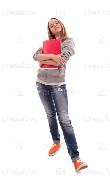 Сноб. Школьница-подросток на белом фоне