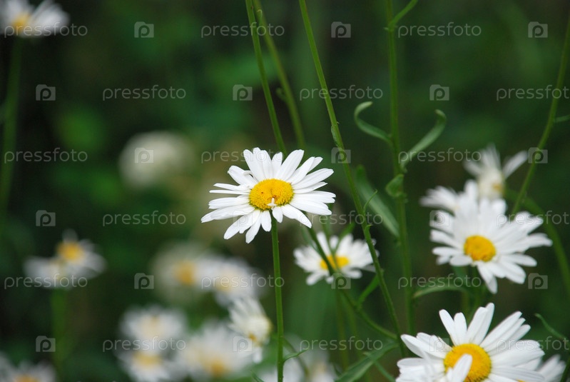 Желтая ромашка с белыми лепестками. Аптечная или лекарственная ромашка – однолетнее растение семейства астровых. На зеленом фоне желтые крупные раскрытые цветы с белыми лепестками и желтой сердцевиной
