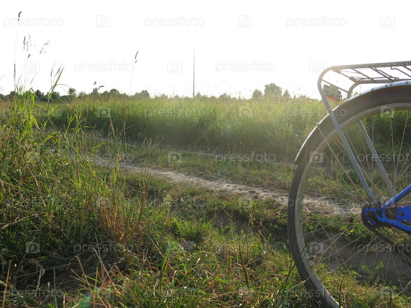 Велосипед на фоне заходящего солнца в широком поле