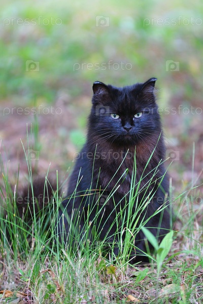 Черный кот на прогулке