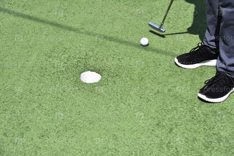 Мальчик играет в мини-гольф