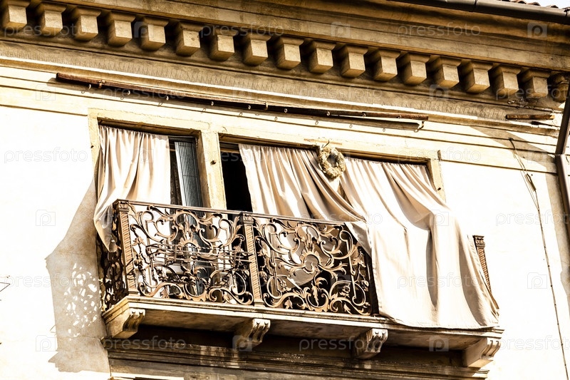 Старомодное традиционное деревянное окно с красивым балконом в Венеции, Италия