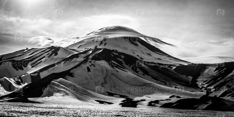 Авачинский вулкан. Лентикулярные (линзообразные) облака над вулканом. Полуостров Камчатка, Россия