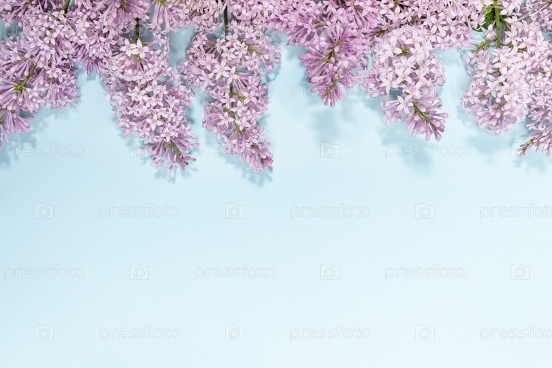 Цветы сирени на голубом фоне с копией пространства