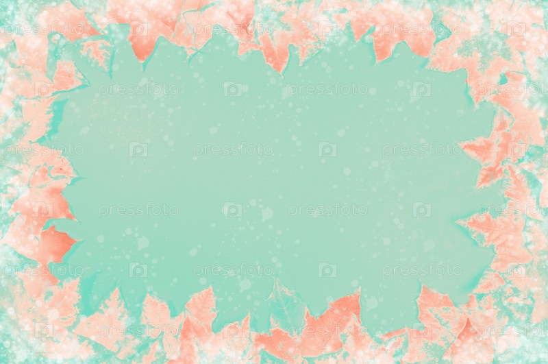 Рамка из коралловых кленовых листьев на неомятном фоне. Тонированное изображение. Креативная открытка или приглашение