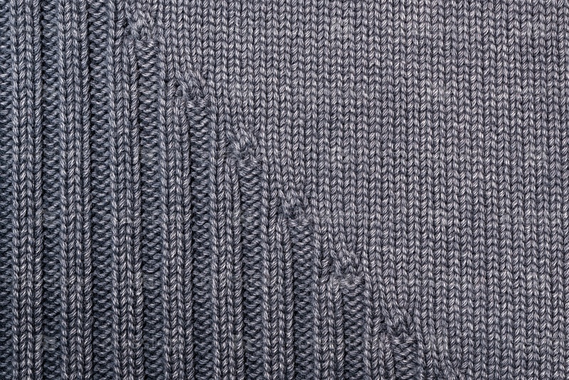 Фрагмент вязаной одежды серого цвета. Крупный план. Вид сверху
