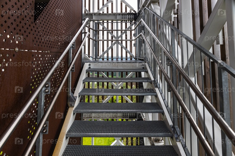 Стальная конструкция с железной лестницей и перилами из нержавеющей стали