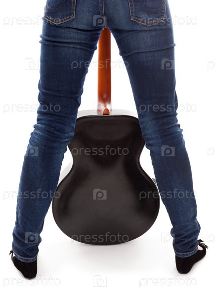 Красивая девушка с гитарой на белом фоне