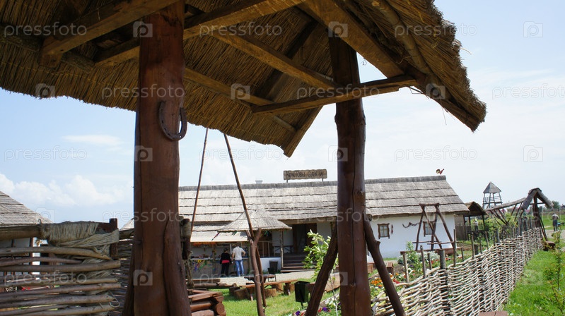 Пейзаж с историческими домами на территории музея атамана