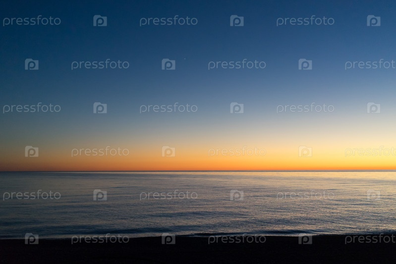 Морской пейзаж с ярким закатом на фоне моря