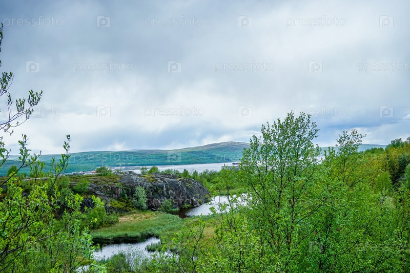 Мурманск, Россия. Природный ландшафт с городом