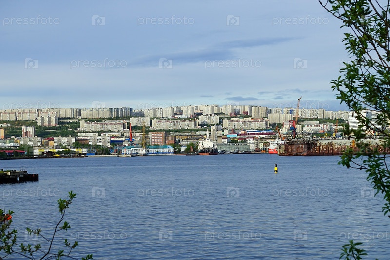 Морской пейзаж с видом на город Мурманск. Россия