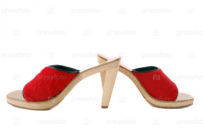 Красные женские туфли на белом фоне