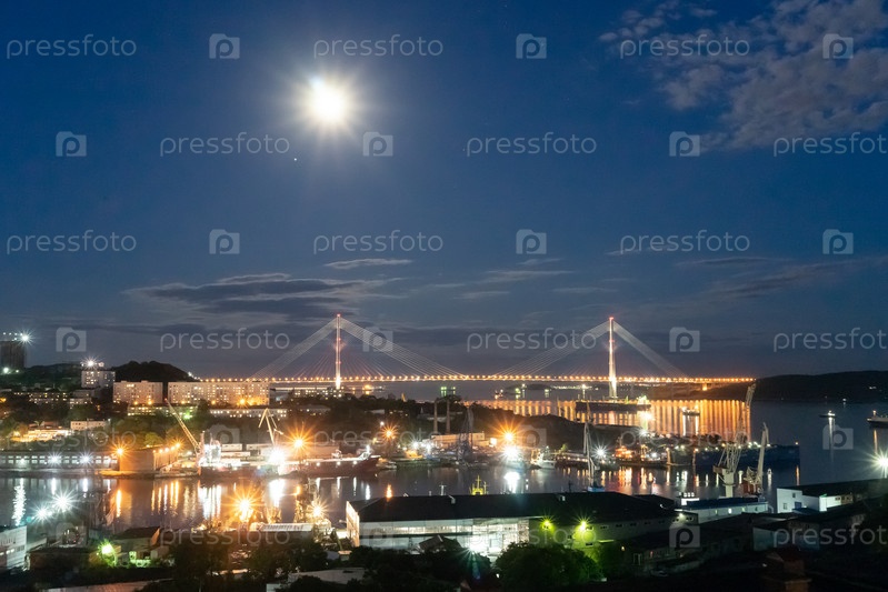 Ночной пейзаж с видом на бухту Диомида и Русский мост