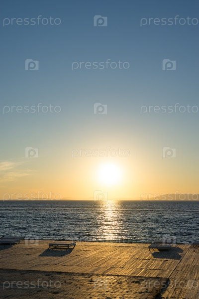 Морской пейзаж с красивым закатом и закатом на горизонте