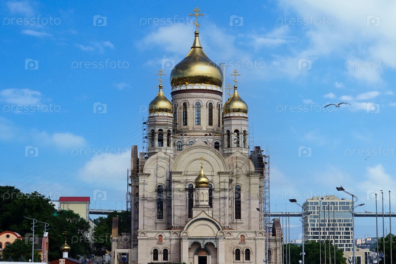 Городской пейзаж с видом на Спасо-Преображенский собор. Владивосток, Россия