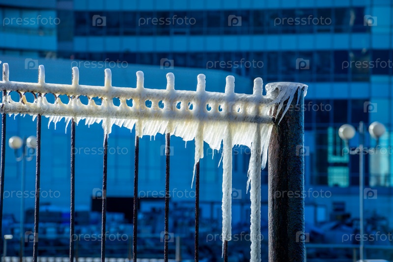 Металлическая конструкция во льду на размытом фоне