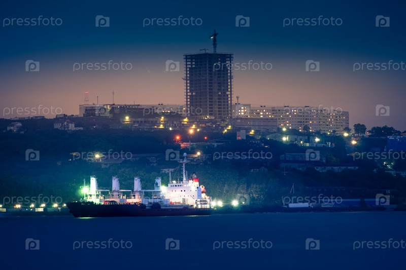 Городской пейзаж с видом на ночной город