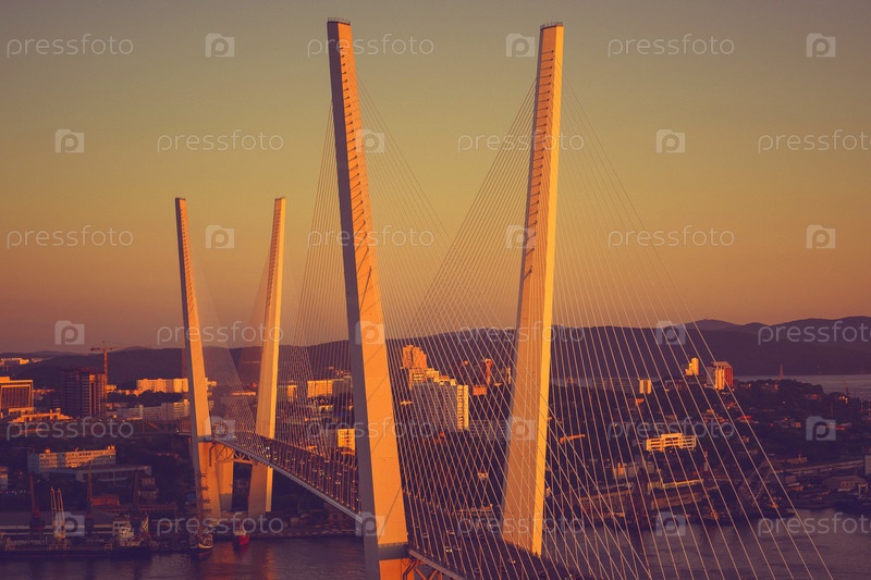 Ночной вид на мост Золотой Рог. Владивосток, Россия