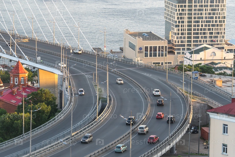 Владивосток, Россия-29 июля 2018 г.: автомобильное движение по Золотому мосту